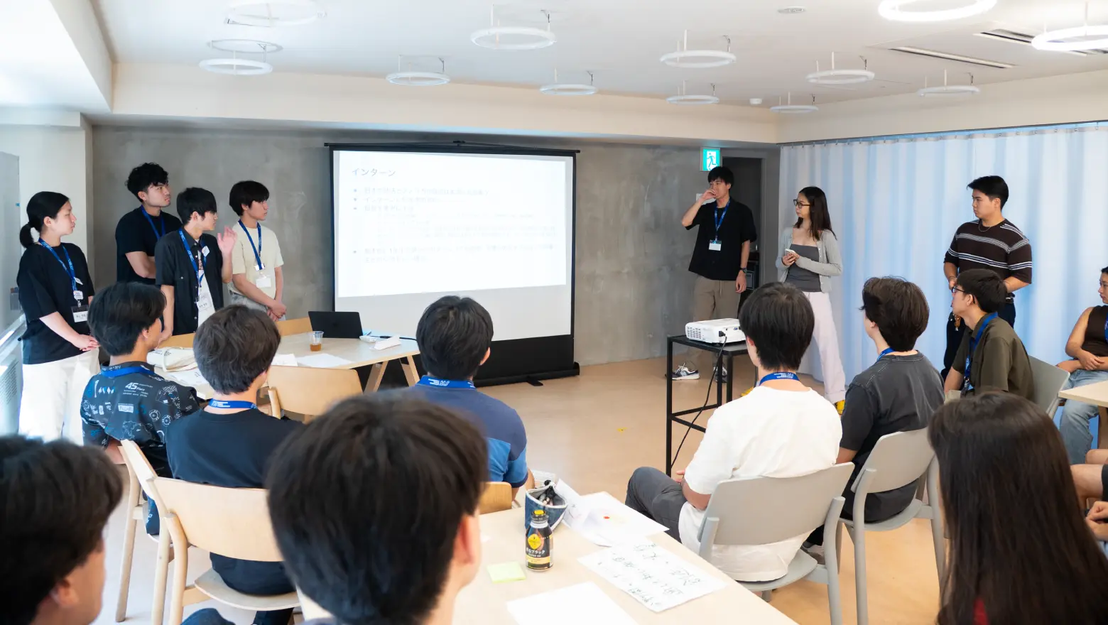 研修ではチームビルディングなど様々なワークショップに挑戦。英語のスピーチトレーニングではトレーナーによるアドバイスのもと、原稿を作成し、仲間の前でそれぞれがスピーチを披露しました。