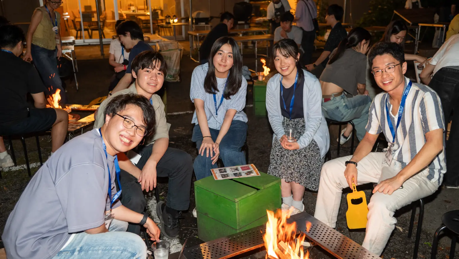夕食のバーベキューでは食事よりもおしゃべりに夢中になってしまう奨学生も。バーベキューのあとはキャンプファイヤーに移り、奨学生同士、貴重な情報交換の場となりました。